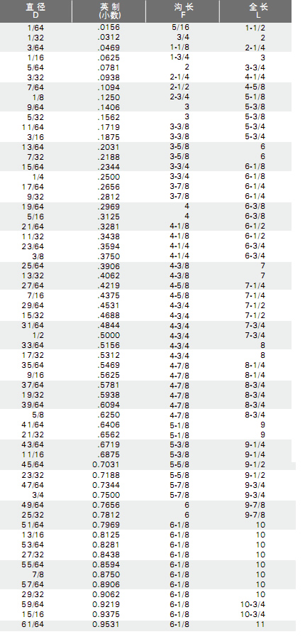 · 英制直柄长麻花钻(美标)